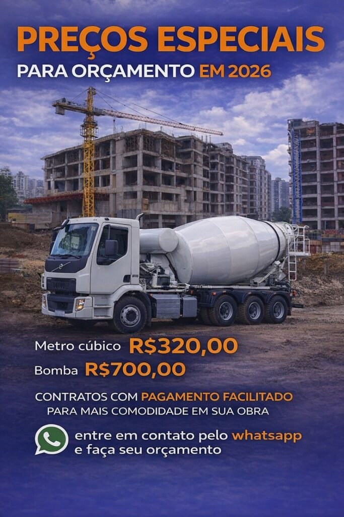 Nosso compromisso vai além do concreto: entregamos confiança e segurança. Garantimos atendimento ágil com entrega em até 24 horas, utilizando frota própria e equipe qualificada, sempre preparados para suprir as necessidades da sua obra com precisão e eficiência.